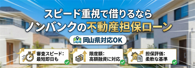 その他にも、岡山県内が対応可能なノンバンクの不動産担保ローンがあります。